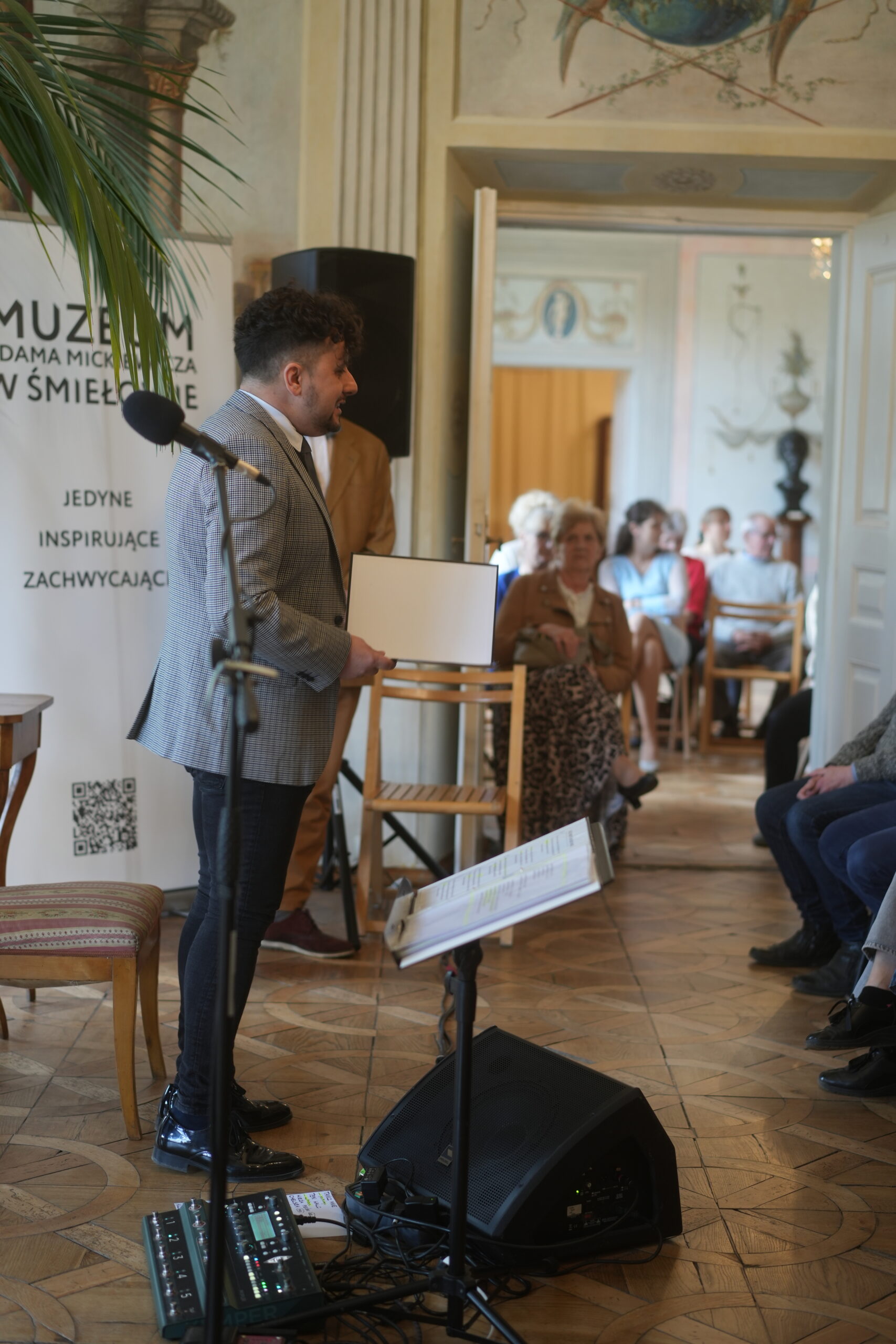 Obchody 50-lecia Muzeum Adama Mickiewicza w Śmiełowie: JEDYNEGO – INSPIRUJĄCEGO – ZACHWYCAJĄCEGO – rozpoczęliśmy 30 marca 2025 roku z prawdziwym przytupem! Witając szczelnie wypełniających sale Gości, dr Emilian Prałat wyraził radość z faktu tak dużej frekwencji i jeszcze większą z faktu możliwości goszczenia w Śmiełowie prof. dr hab. Wiesława Rzońcy z Uniwersytetu Warszawskiego i gitarzysty-barda Jakuba Blokesza! Prof. Rzońca zaprezentował fenomenalny, porywający, niezwykle dynamiczny wykład dotyczący wyjątkowej w biografii Mickiewicza roli, jaką odegrał pobyt w Wielkopolsce dla późniejszej redakcji „Wielkiej improwizacji” z III części „Dziadów”. Nie zabrakło wątków biograficznych i z iście scenicznym zacięciem prezentowanych fragmentów tego wyjątkowego dzieła. O uznaniu dla Prelegenta świadczyły długie, rzęsiste brawa. W drugiej części spotkania goście mieli okazję wysłuchać fragmentów poezji i piosenek Leonarda Cohena w brawurowym wykonaniu Kuby Blokesza. Blisko 2,5 godzinne spotkanie zgromadziło blisko 150 gości! Lepszego, bardziej wartościowego naukowo i urzekającego artystycznie zainicjowania obchodów naszego Muzeum nie mogliśmy sobie wyśnić! Dziękujemy za obecność i zapraszamy do śledzenia programu naszego jubileuszu!